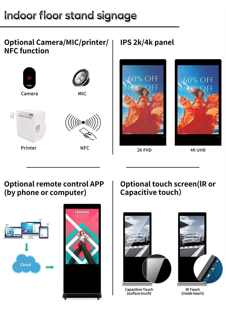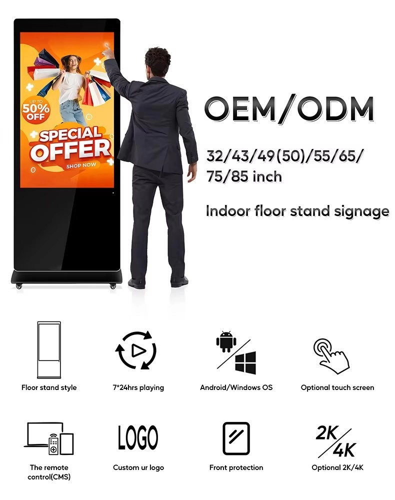 High-definition vertical advertising machine, floor-standing touch all-in-one machine, advertising commercial video query display screen, touch large screen